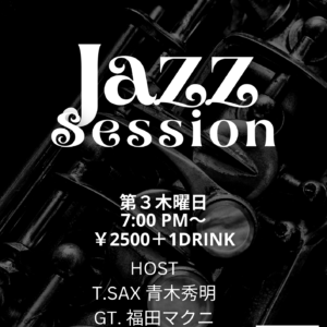 22モダンジャズセッションモダンジャズセッションTime: 7:00 PM - 11:00 PM 黒本(ジャズ・スタンダード・バイブル)を中心に演奏します。他にやりたい曲がある場合は、3部、4部程の楽譜をお持ちください!楽しくセッションしましょう♪ 第2、4、5月曜日開催 ホスト 達川G 横尾B マスターDr ¥1500+1drink | 23pops&soul&all genreセッションpops&soul&all genreセッションTime: 7:00 PM - 11:00 PM 凄腕ギタリスト福田マクニさんと素敵な歌声ボーカリストkunieさんホストのオールジャンルセッションです!やりたい曲がある場合は3.4部ほど譜面をお持ちください! 用意してある譜面もたくさんあります!お好きな楽器かボーカルでご参加ください♪ ¥2000+1drink ホスト Gt.マック福田 Vo.Kunie | 24超初心者ジャズセッション超初心者ジャズセッションTime: 7:00 PM - 11:00 PM 初心者向けのやさしいジャズセッションです。黒本(ジャズ・スタンダード・バイブル)などからいるメンバーで遊べる曲をやっていきます。店イベントで一番緩いセッションになります。 店の人間3人体制のため、お店初めての方やセッション初めての方はジャンルに限らず、ご都合合えば1回この日に来ることをお勧めしています。 毎月第2第4水曜日開催 世話人 マスター&ショウ&コウ ¥1500+1drink ↓参考曲と初心者向けのルールはmoreから | 25グルーヴナイトグルーヴナイトTime: 7:00 PM - 11:00 PM ブラックミュージックベースのノンジャンルセッション [Groove Night] です。傾向はJust a Two of Us、Feel Like Makin' Love、Play that Funky Music、丸サ、接吻などが定番です。リスナーさんも大歓迎! ソフドリ・お酒・フード各種アリ〼 歌いたい・演奏したい曲は、お手持ちの譜面のコピーを3~4部ご持参ください。 譜面がなければ、事前にリクエストいただければ用意できますので、ホスト斎藤さんにご連絡ください。 毎月第4木曜日開催 ホスト gt.齋藤勇朗 ba.秋山瑞穂 dr.瀧本未有 ¥2000+1drink 詳細は↓more(Facebookページ)をご確認ください。 | 26ユーミンセッション♬ユーミンセッション♬Time: 7:00 PM - 11:00 PM ユーミンの曲のセッションです♪歌う人、演奏する人いらっしゃ~い!! ・中央フリーウェイ ・卒業写真 ・12月の雨 ・ルージュの伝言 ・生まれた街で ・瞳を閉じて ・さみしさのゆくえ ・きっと言える ・緑の町に舞い降りて ・やさしさに包まれたなら などなど、たくさんの曲が演奏可能です♪ 世話人、マスター、若さん(gt)、タコ(bs)、なおこさん(Pf)、Kunie(Vo) 毎月第四金曜日開催 ¥1500+1drink ↓現在のレパートリーです | 27