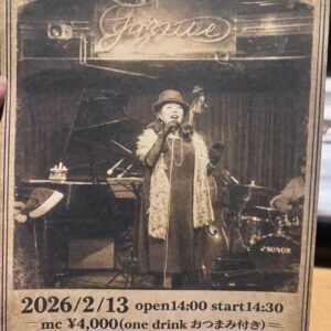2月曜ジャズセッション月曜ジャズセッションTime: 7:00 PM - 11:00 PM 黒本を中心に演奏します。その他にやりたい曲がある場合、人数分(3,4部)の譜面をご持参ください!少人数で沢山演奏の出来る日です。初心者から上級者まで楽しめます。 第1第3月曜日開催 1500円+ワンドリンク代 [サポート] gt.清藤さん bs.横尾さん | 3 | 4 | 5 | 6初心者POPSセッション初心者POPSセッションTime: 7:00 PM - 11:00 PM ※2026年から毎月第一金曜日、第三土曜日開催になりました!お間違えの無いようにお願いします!