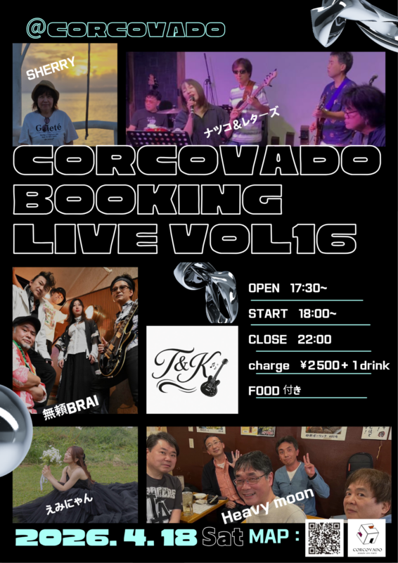 | 1 | 2 | 3 | 4フリージャンルセッション(イッシー&リンダナイト)フリージャンルセッション(イッシー&リンダナイト)Time: 7:00 PM - 11:00 PM フリージャンルでセッションしましょう♪ジャンルにとらわれず、JAZZからPOPS、ロックまで!演奏は他の日比べて少ないので、お話好きな方も是非! 第1金曜日に不定期開催 ホスト イッシー&リンダ 1500円+ドリンク代 | 5バンドサーキットライブVOL.9バンドサーキットライブVOL.9Time: 12:45 PM 村上りょう&コルコバード企画のブッキングライブです!
