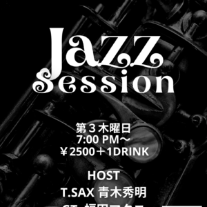 | 17月曜ジャズセッション月曜ジャズセッションTime: 7:00 PM - 11:00 PM  黒本を中心に演奏します。その他にやりたい曲がある場合、人数分(3,4部)の譜面をご持参ください! 少人数で沢山演奏の出来る日です。初心者から上級者まで楽しめます。 第1第3月曜日開催 1500円+ワンドリンク代 [サポート] gt.清藤さん bs.横尾さん | 18ファンクセッションファンクセッションTime: 7:00 PM - 11:00 PM  定番曲を中心に、やりたい曲がある方は譜面をお持ちください♪ ボーカルの方も歓迎!! ホスト Ba/小倉諭史 Gt/武田展明 Dr/増田亮 2500円+ドリンク代 | 19ヴィンテージロックセッションヴィンテージロックセッションTime: 7:00 PM - 11:00 PM  60s-70sの洋楽を演奏しましょう! SSW , Harmony Pop , Soft Rock , 裏ビートル系 , Folk Rock好きな方向け 第3水曜日開催 charge ¥1,500 and 1drink ↓詳細ページはMoreから | 20JAZZセッション(G福田マクニTs青木秀明)JAZZセッション(G福田マクニTs青木秀明)  今月から始まりました! 実力派ミュージシャンお二人ホストのjazzセッションになります。 黒本を中心にやりたい曲がある場合3、4部の楽譜をお持ちください! チャージ¥2500+1ドリンク ホスト G福田マクニ Tsax青木秀明 | 21 | 22スウィング&トラッドジャズセッションスウィング&トラッドジャズセッションTime: 2:00 PM - 5:00 PM  スウィング&トラディショナルジャズセッション! 「聖者の行進」とか、 「ベイズン・ストリート・ブルース」 とか曲名は知らなくても、どこかで聞いたことのある曲がいっぱい! 普段はモダンジャズも演奏しているホストなので、スウィング&トラディショナルとは言いつつも、モダンジャズも対応可能。幅広い年代のジャズに対応可能なセッションとなっております。 ジャズ初心者の方、セッション初心者の方にもお勧めできるセッションです。 Host:伊藤聖(Sax)、北澤 一也(Bass) ¥2000+1drink 開催 奇数月第4土曜日 | 23JPOPセッションJPOPセッションTime: 2:30 PM - 6:30 PM  別名【生バンドカラオケ!】人気イベント【JPOPセッション】です!カラオケ好きな方は是非このイベントに遊びに来てください!もちろん楽器の演奏も歓迎です!やりたい曲がある方は人数分の譜面持参ください!こちらでも多くの曲の譜面があります!